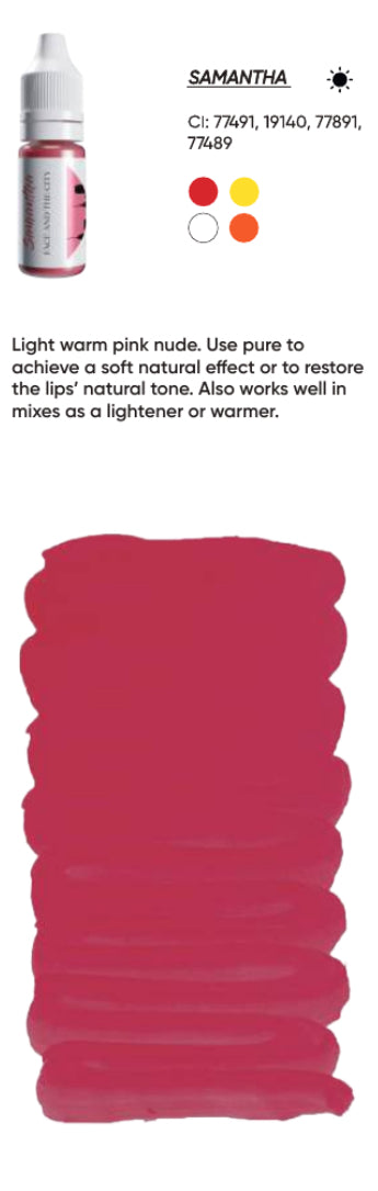 Samantha is the part of the "FACE AND THE CITY" LIMITED EDITION of lip pigments introduces 5 new hybrid pigments based on organic ingredients. Inspired by the iconic TV series "Sex and the City," this set pays homage to its beloved heroines - Samantha, Charlotte, Miranda, and Carrie.